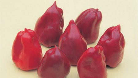 Een ongebruikelijke, decoratieve variëteit, het belangrijkste kenmerk is een zeer nette struik, waarvan de hoogte niet groter is dan 40 cm. Rode kegelvormige pepers, dikwandig, zoet en sappig met een gewicht tot 60 gram. Productiviteit tot 2 kg / m², vroege rijping.