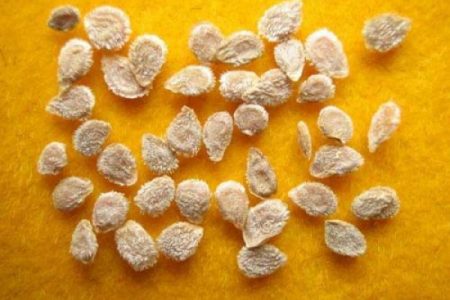 Zaden kunnen na de oogst uit het fruit worden geoogst. Hiervoor worden gezonde, sterke en grote vruchten geselecteerd. Ze worden gekozen uit de tweede of derde borstel van de plant. Zorg ervoor dat het fruit niet rot of zuur is. Vervolgens wordt het fruit langs de sinussen gesneden en worden de zaden eruit gehaald. Ze worden dan op een warme plaats gezet en mogen een paar dagen ronddwalen. Daarna worden ze gewassen met water en neergelegd om te drogen.Wanneer de zaden volledig droog zijn, moeten ze in papieren zakken worden gegoten en op een koele en droge plaats worden bewaard. Als je beschadigde zaden ziet, verwijder ze dan onmiddellijk.