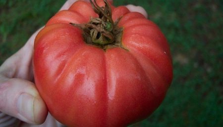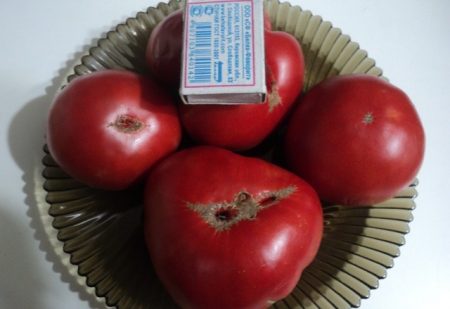 Ik kweek zowel grootvruchtige als kleine tomaten. Dit jaar werd de variëteit "Grandma Baker" gevangen. Productiviteit is goed, 3-3,5 kg. uit de bush. De stengel is dun, maar redelijk stabiel. Opvallend door het gewicht van de vrucht. Er was een tomaat die een massa van 800 gram bereikte. Slechts vijf struiken werden geplant, dus de tomaten aten alleen en maakten vers sap, er was niets om te sluiten, omdat het heel snel uiteenliep.