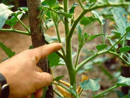 - Een groot aantal bladeren wordt gevormd op de zijtakken, die niet alleen voedsel "nemen", maar ook een dichte kroon van de struik creëren. Dit interfereert met de luchtcirculatie, de luchtvochtigheid stijgt in de kas, tomaten beginnen pijn te doen.