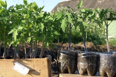 Drie zaailingen worden op een vierkante meter geplant, dit geeft de tomaten ruimte. Rust de kas van tevoren uit met steunen voor hekwerk of installeer stokken voor kousenband op elke plant. Je moet niet alleen de stengel vastbinden, maar ook individuele tomatenborstels zodat ze niet breken onder het gewicht van tomaten.