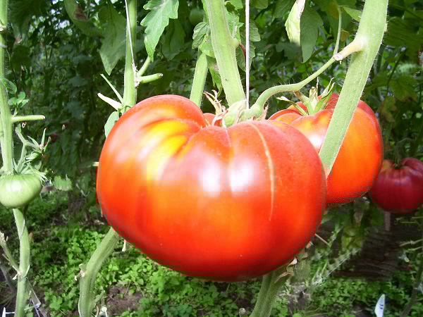 Zaden voor het eerst gekocht bij een verzamelaar. Ik vond de beschrijving leuk en vooral het feit dat de vrucht van de Braziliaanse gigantische variëteit rode schil en frambozenvlees zou moeten hebben. Groeide in mijn polycarbonaat kas, leidde het in twee stengels. Maar dit is alleen het eerste jaar, in het tweede, al uit ervaring, liet slechts een stengel. Tomaten wogen gemiddeld 700-750 gram, heerlijk. Maar er was geen frambozenpulp, en aan de bovenkant en binnenkant waren rood.