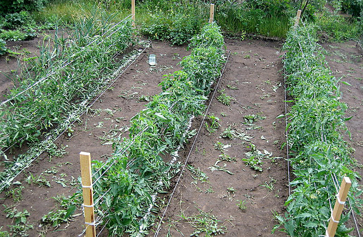 Je kunt geen water geven aan struiken van tomaten, dit leidt tot het verschijnen van ziekten, lagere opbrengsten. Bij het kweken van variëteiten met grote vruchten is water geven van bijzonder belang, en in dit geval zal de uitrusting van het druppelirrigatiesysteem de beste optie zijn. Water stroomt gelijkmatig naar de wortels van de planten, droogte en overmatig vocht zijn uitgesloten, de vruchten zullen niet barsten. Dergelijke systemen zijn erg handig, zelfs als inwoners van de zomer de site alleen in het weekend bezoeken, en het is niet mogelijk om de watergift aan te passen.