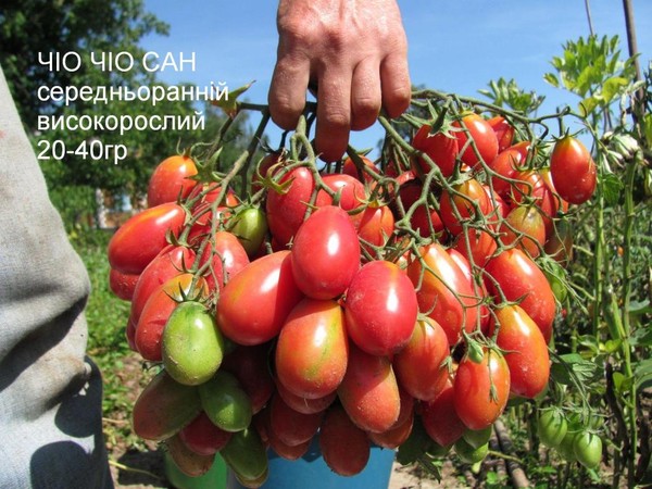 De variëteit "chio-chio-san" onderscheidt zich door grote vertakte borstels, waarop het aantal kleine vruchten 50 kan bereiken, en in sommige gevallen met een hoge luchtvochtigheid, soms zelfs meer. Deze variëteit wordt gevormd tot 1 stengel en wordt aanbevolen om te groeien in kasomstandigheden.