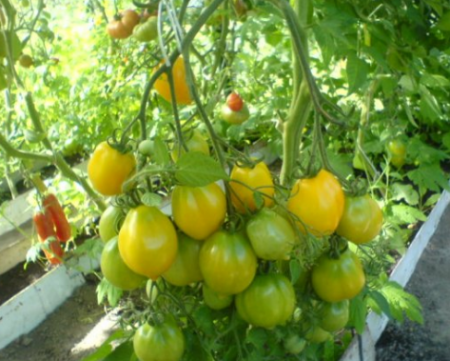 “Gewoon een prachtige variëteit, de naam heeft gelijk! Ik kreeg eerst toevallig, als een herschikking. Hij zat in een roedel, waar ze verwachtte zaden van een andere variëteit te zien. Stel je de verrassing eens voor wanneer tomaten worden geplant en in plaats van het verwachte Bull's hart, groeit het ineens uit het is niet duidelijk wat.De variëteit is medium-laat en bond twee borstels vast, de derde bloeide en leidde vervolgens naar de stam. Toen verschenen er ongeveer honderd bloemen op de borstel, maar toen werden ze vastgebonden, 40 stuks gerijpt. Natuurlijk realiseerde ik me dat er tomaten groeien, maar welke ik tegen het einde raadde toen ik rijp fruit zag. "Wonder van de wereld" is. Klein, mooi geel. Ik zeg weinig, omdat het hart van de stier wachtte. Nu zal ik het zeker weer planten, ik weet al wat ik op een iets andere manier moet verzorgen "