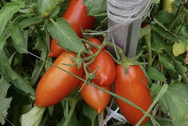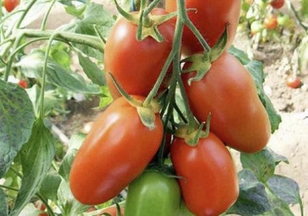 Dit is een lange tomaat, kan 1,7 m bereiken. De bladeren zijn verzadigd groen, groot. De vruchten hebben een mooie cilindrische vorm en hun grootte is 120-150 g. De kleur van rijpe tomaten is rood.
