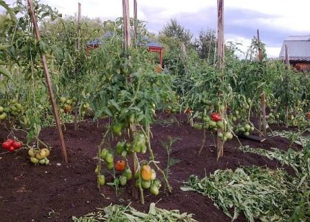 In augustus knijp ik planten op een hoogte van 1,5. De helft van de oogst is inmiddels al geoogst en aangelegd in banken. Maar onrijpe borstels blijven hangen. Tomaten kunnen tot half oktober worden gegoten, als ze niet breken voordat ze invriezen. De vruchten zijn al niet erg mooi, maar dan kun je ze bijna tot eind november eten!
