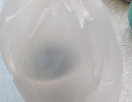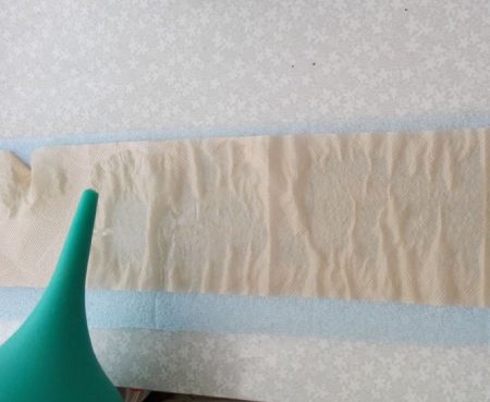 Uit de spuit moet de oplossing gelijkmatig op toiletpapier worden gegoten, zodat deze goed doorweekt is.
