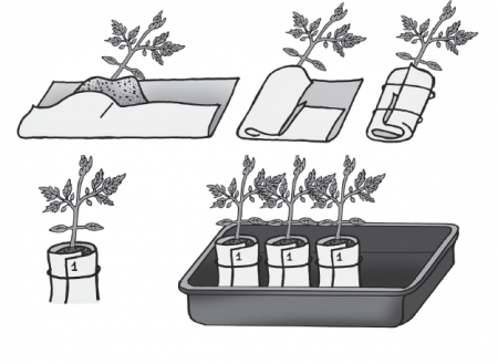 Zaden uit toiletpapier hoeven niet te worden verwijderd. Giet direct op een wc-papier met een lepel of spatel een laag van twee centimeter losse grond.