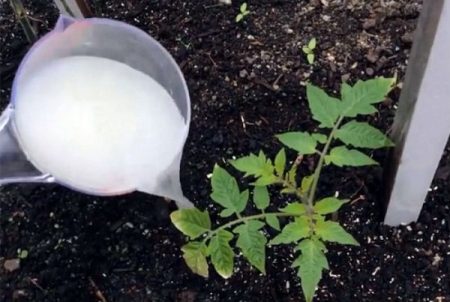 - de laatste vijfde voeding is nodig zodat de tomaten sneller rijpen en hun smaak meer verzadigd is. Tijdens de periode van actieve fruitrijping worden de struiken bewaterd met een oplossing van superfosfaat en vloeibaar natriumhumaat (op een emmer water van tien liter, respectievelijk 2 en 1 eetlepel kunstmest).