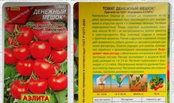 Een geldzak is een vroegrijpe en zeer productieve tomatenvariëteit die ideaal is voor het kweken in kassen en open grond. Tomatenstruik tot 1,8 meter hoog vereist verplichte kousebanden voor de ondersteuning en knijpen. De beste resultaten van het kweken van het gewas kunnen worden bereikt wanneer tomaten in 1-2 stelen worden geteeld. Vruchten rijpen met borstels van elk 15 vruchten.