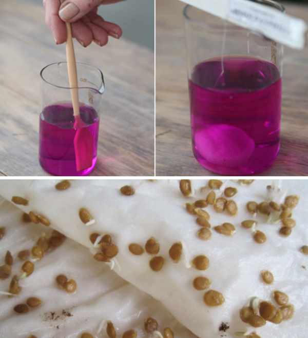 Zaden die in kaliumpermanganaat zitten, is het het beste om een paar keer met een stok te mengen en daarna grondig met water te spoelen. De volgende stap is om ze op een droge plaats te drogen totdat ze los zijn, waarna je ze kunt opsturen of in een kas kunt planten.