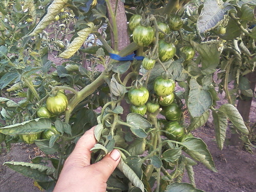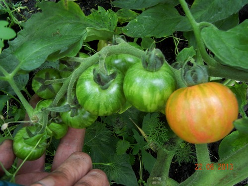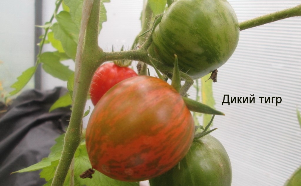 De Wild Tiger-tomaat werd voor het eerst gekweekt.De vruchten zijn klein, geweldig om in potten te beitsen. Veel tijd besteed aan de zorg voor de plant. Ik heb twee keer tomaten gevoerd. De eerste, toen ze nog in de kas waren, en de tweede keer, toen de vruchten begonnen te binden. Oogstgemiddelde. 3-4 tomaten werden op één borstel gebonden. De smaak is aangenaam.