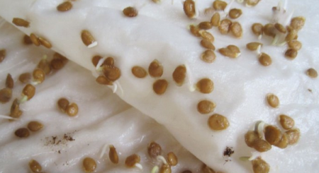 De enige maatregel die in dit geval moet worden uitgevoerd, is kiemkracht. Om dit te doen, worden de zaden 5-7 dagen voor het zaaien op bevochtigd weefsel geplaatst, waar ze de gespecificeerde tijd hebben totdat ze ontkiemen. Barstende zaden kunnen vol vertrouwen in de grond worden geplant.