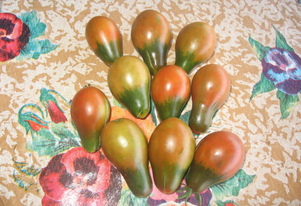 “Zeer interessante tomaten, kastanjebruin, grappig en smakelijk. De struik is lang en vruchtbaar tot aan de vorst. Ik ben van plan om volgend jaar ook tomaten van deze variëteit te planten. ”