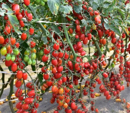 - Tomaten rijpen clusters, elk 6-8 stuks;