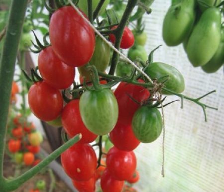 Ik kweek deze variëteit elk jaar in kassen van polycarbonaat. Ik hou van de zoete smaak. Zouten met hen is goed. Tomaten zijn klein, de schil is veerkrachtig, barst niet. Fruit de variëteit zelfs in de eerste vorst.