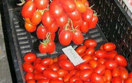 Variety Finik Krasny werd gefokt door Russische fokkers op basis van kruisen met cherrytomaten. De vruchten van deze variëteit worden meestal gebruikt voor buffetgerechten, hun decoratie en tomaten worden aanbevolen voor dieetvoeding. Date Red is geschikt voor alle liefhebbers van kleinfruitige variëteiten.