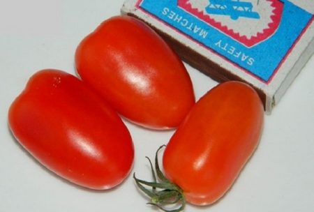 - tomaten hebben de vorm van een langwerpig ovaal met een puntige punt, vergelijkbaar met dadels;