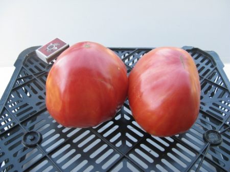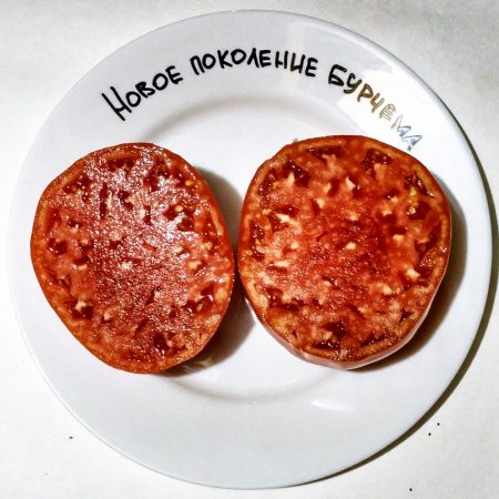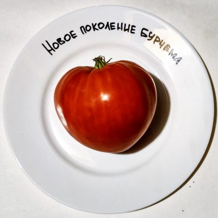 “Tomaat De nieuwe generatie Burcham is ons favoriete ras. We telen al heel lang tomaten, het ras valt op tussen vele anderen. De vruchten zijn groot, vlezig, smakelijk. Gerechten zijn uitstekend.