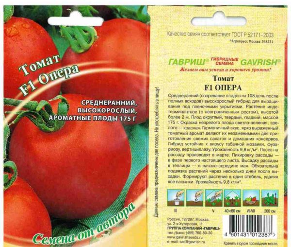 “Opera is een goede vroege rijpe tomatenvariëteit. Gemakkelijk onderhoud, snelle rijping van tomaten en een onberispelijke smaak zijn de belangrijkste voordelen van de variëteit. ”