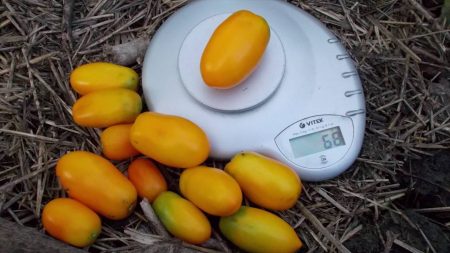 Tomaten Oranje ijspegel - goudgeel, gekenmerkt door hun vlezige textuur en grote maten, die ideaal zijn voor het snijden van groenten. Ze worden gekenmerkt door een dikke huid, die dient als garantie voor bescherming tijdens transport over lange afstanden. Tomaten zijn sappig en vlezig, zwaar vlees, hebben een hoog watergehalte.
