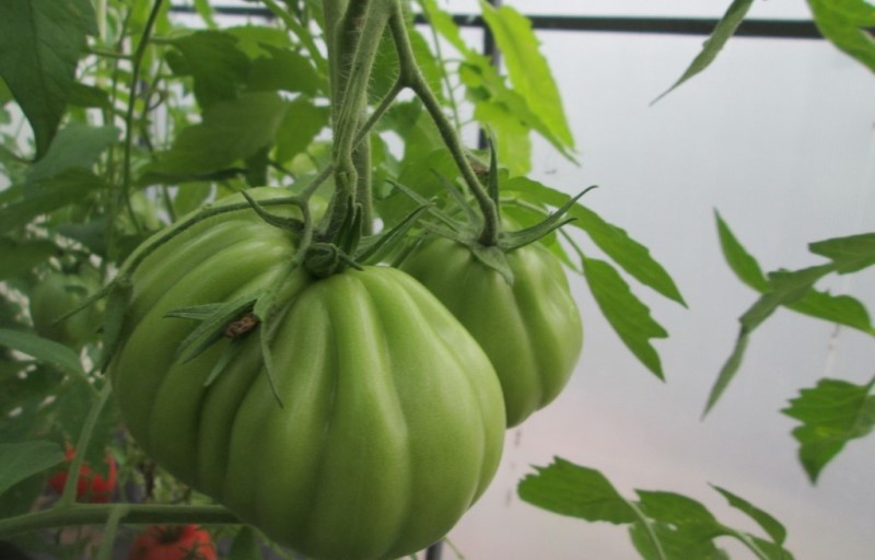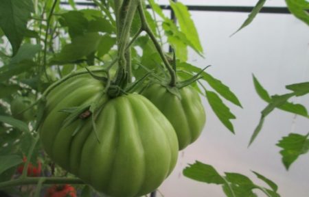Een plant wordt als onbepaald beschouwd wanneer de struiken geen eindpunt hebben waar hun groei ophoudt. Meestal als ze in open grond worden geplant, groeien de struiken tot 1,2 m, in kassen - tot 1,7 m, gemiddeld 1,5 m. Maar, wanneer de omstandigheden buitengewoon gunstig zijn, kunnen ze ook in 2 m uitsterven. De struik heeft een gematigd gebladerte, met sterke wortels, vrij zwakke stengels. Daarom moet je vastbinden, de wind bewaken, als de grond open is. Gewoonlijk verschijnen 3-5 individuele vruchten op de handen. Gebaseerd op het gebied - 1 m². moet 3 struiken bezetten, niet meer.