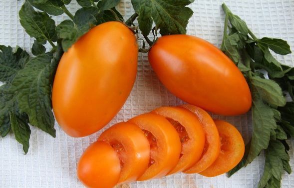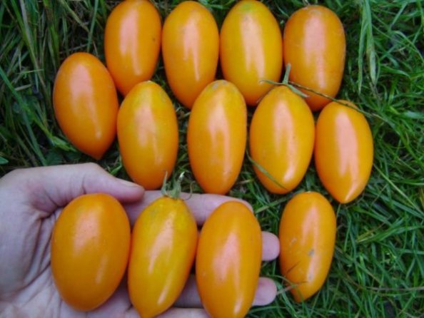De vruchten zijn ovaal, klein van formaat en wegen 70-80 gram. De kleur van de tomaten is geeloranje of goudgeel. De korst is dik. Barst niet als hij rijp is.