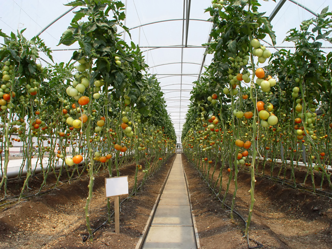 Jonge tomatenstruiken worden in eerste instantie half mei geplant onder filmschuilplaatsen, zodra het warme weer begint.