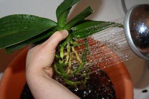 De tweede reden waarom de bladeren verwelken in de orchidee is ook gerelateerd aan de wortels. Het gaat niet om hun ziekte, maar om een banaal gebrek aan vocht. De plant kan eenvoudigweg geen vocht opnemen als de grond te droog is. Dit leidt tot uitdroging en de dood van de wortels. En als de plant heel regelmatig water wordt gegeven, kunnen ze zelfs beginnen te rotten.
