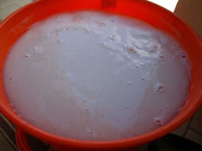 Dit recept zal vooral nuttig zijn als zaailingen recent zijn geplant en langzaam groeien. Voor 10 gram droge gist, neem 10 liter zuiver warm water en meng goed. Voeg een eetlepel suiker toe en maak het mengsel een paar uur op een warme plaats schoon. Gedurende deze tijd moet het gistingsproces actief beginnen, er vormt zich een schuimkap op het oppervlak. Dit geeft de effectiviteit van de tool aan. Roer het mengsel opnieuw en giet de tomaten onder de struik. Voor elke struik mag niet meer dan een halve liter van de resulterende oplossing zijn. Na het water geven wordt de grond gemulst met zaagsel of stro met toevoeging van turf. Herhaal de procedure na 14-20 dagen.