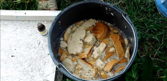 Omdat de samenstelling van brood ook gist bevat, wordt het gebruikt voor voeding. Neem een emmer en vul deze voor de helft met broodkorstjes, vul hem met warm water en blijf 4-5 dagen staan. Brood moet goed worden aangezuurd, dus de emmer moet op een warme plaats worden geplaatst. Op de vijfde dag wordt een pak gist in een emmer gegoten en stond er nog een dag op. Vervolgens werd het resulterende mengsel gefiltreerd door gaas en verdund met een oplossing van water in een verhouding van 1:10. Giet tomatenstruiken met broodinfusie.