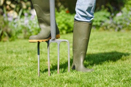 Het gazon moet tijdig worden verzadigd met zuurstof. Gebruik hiervoor een beluchter. Als hij nog niet op de boerderij is, zullen tuinvorkvogels het doen. Ze moeten de bovenste laag doorboren. Breng de grasmat omhoog en maak een lichte helling in de richting. Extreem droog weer is geschikt voor beluchting. Houd rekening met de volgende aanbevelingen: