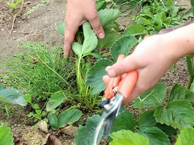 Veel tuinders leren over deze bes na aardbeien plukkenze weten niet wat ze met de snor moeten doen, maar ze moeten worden afgesneden. Wanneer de vrucht eindigt, beginnen de struiken weer actief te groeien, wat leidt tot een toename van gebladerte op planten, evenals de groei van nieuwe antennes. Als de tuinman onnodige processen niet op tijd afsnijdt, zullen de struiken aanzienlijk verzwakken, en dit zal een negatieve invloed hebben op de voeding van de plant, wat de overlevingskansen in wintervorst zal verminderen.