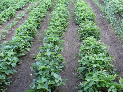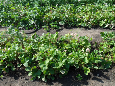 Aardbeistruiken reproduceren het gewas binnen twee en een halve of drie weken, gedurende welke tijd de grond op de bedden erg dicht wordt, dus het is erg belangrijk om alle onkruid te verwijderen en vervolgens de grond los te maken.