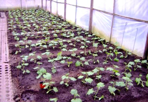 Verwarm de voorbereide grond, zorg ervoor dat er geen tocht is, je kunt de kas openen voor ventilatie, er is de nodige vochtigheid en zaailingen kunnen worden getolereerd. Maak voorzichtig gaten in de grond op een afstand van 30-35 cm van elkaar, laat minstens een meter tussen de rijen, want als de struiken groeien, kunt u niet tussen de rijen lopen en voor de planten zorgen. Zaailingen mogen in geen geval worden overbelicht, niet langer dan 25 dagen - en in een kas worden geplant.