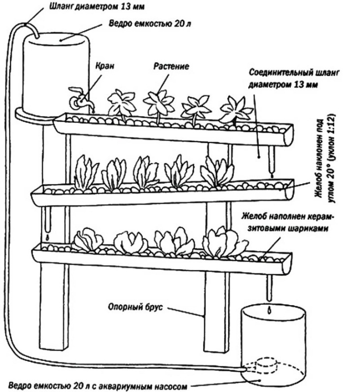Voor kapitaalconstructies zijn baksteen en ander materiaal geschikt. De bedden hebben de vorm van trappen. Er moet een rek zijn om te binden. Dit is een herbruikbare containeroptie. De video toont andere manieren om de technologie te implementeren.