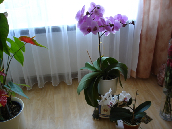 - phalaenopsis mini - miniatuurbloem met lila bloemblaadjes;