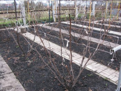 In de gebieden buiten het Oeralgebergte is het moeilijk om de terugkeer van koud weer in het voorjaar te voorspellen, dus u moet de belasting niet op voorhand riskeren en normaliseren. Struiken vormen zich op verticaal gemonteerde steunen. Zorg ervoor dat u reserveogen achterlaat in het geval van bevriezing van struiken.