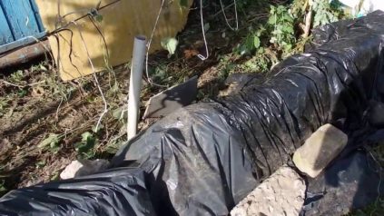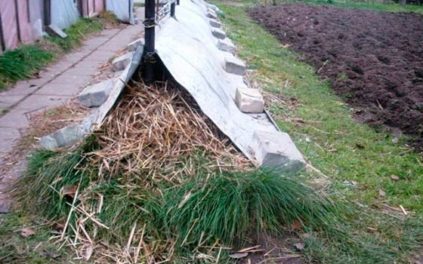 De steunen worden boven het grondniveau geplaatst om te voorkomen dat er neerslag of sneeuw tussen de muren komt. Loopgraven zijn een goede bescherming van druiven tegen schade door knaagdieren.