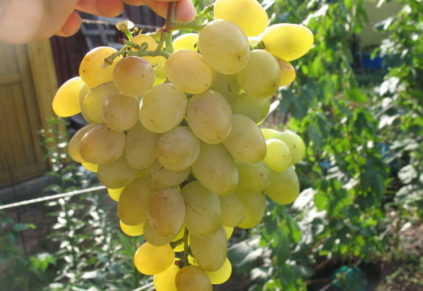 Ik kweek al meer dan tien jaar druiven. De meest productieve variëteiten zijn Tukay, Szabo en Katun Muscat. Het groeit in mijn ruggen, ernaast is een schuur, dus de aanplant is afgesloten van de wind. Veel gedoe, het cultiveren van variëteiten kost tijd, vorig jaar leek ook schimmel. Maar alle moeilijkheden zijn overweldigend, maar hoe goed worden de druiven geoogst, niet zoals een winkel.