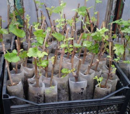 Mengsel: compost, kalium en fosforcomponenten, as. Voor het planten is het raadzaam om thuis struiken te kweken. In februari of maart worden ze in voorbereide containers geplant en pas dan, als het warm is, worden ze overgebracht naar ruggen. De methode is geschikt voor druiven die uit stekken worden gekweekt, evenals voor struiken die in de herfst zijn gekocht.