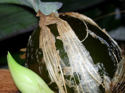 Een eivormige bol komt uit een exotisch land. Daarmee begint de nauwgezette teelt van onaardse schoonheid. Om een plant goed te planten, is het beter om te beginnen met het uiterlijk van de bol. Het moet enigszins groenachtig zijn op een bruine achtergrond, van gemiddelde grootte (omdat in grote maten de kans op sterven soms toeneemt) en met een klein proces, dan zal het resultaat niet lang op zich laten wachten.