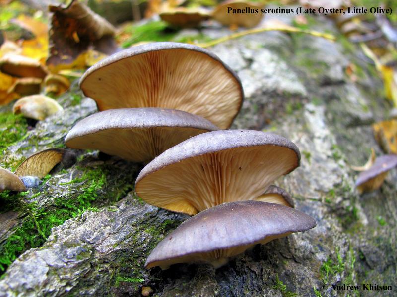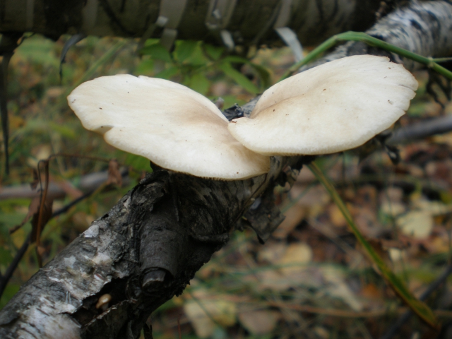 Oesterzwam (Pleurotus ostreatus) - te vinden in breedbladig bos, geeft de voorkeur aan stompen en dode bossen van bladverliezende soorten (berk, eik, iep, lijsterbes). Het heeft een halfronde hoed die lijkt op een oor, tot 20 cm groot, grijsachtig geel van kleur.