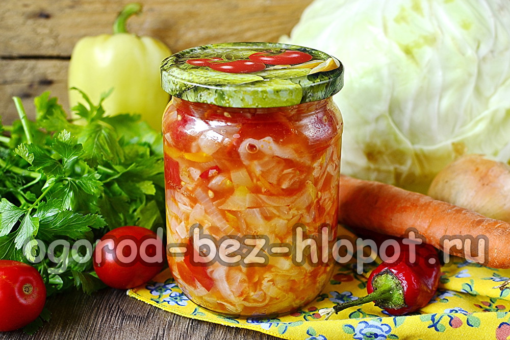 Het belangrijkste ingrediënt van deze dressing is verse witte kool. Je kunt op elk moment een pot dressing uit de bijkeuken halen en een heerlijke borsch bereiden, zonder de moeite te nemen om alle groenten te snijden.
