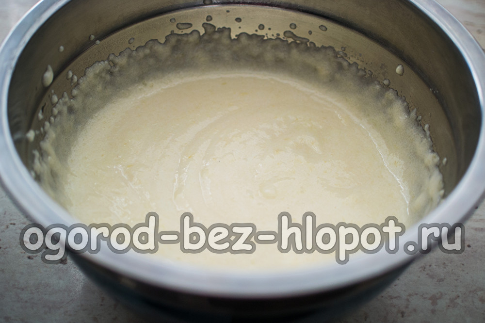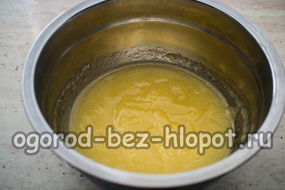 Begin opnieuw de aardappelpuree met gemiddelde snelheid op te kloppen, terwijl je een dunne stroom siroop giet. Heemstmassa neemt 2-3 keer in volume toe, het wordt dik. Klop in totaal 5-8 minuten.