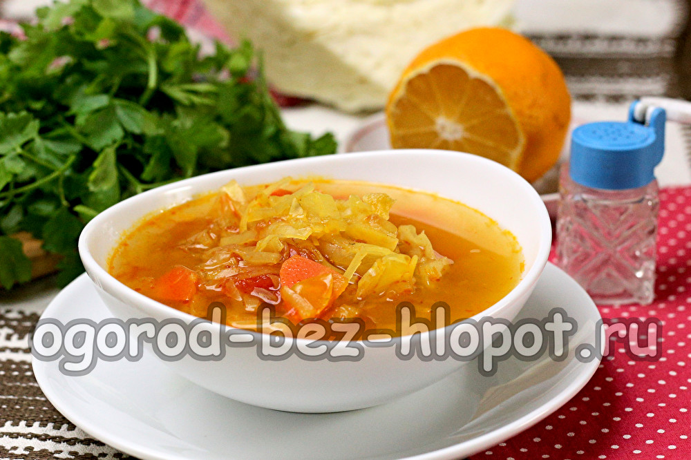 Het is bereid in slechts een half uur, er zitten geen heerlijke of dure ingrediënten in de samenstelling - alleen groenten, en het is beter om seizoensgebonden te nemen. De basis van het juiste recept voor deze soep is kool, en hieraan voegen we alles toe dat in de groentenplanken of in de voorraden ligt, met uitzondering van aardappelen. Het zijn aardappelen met een grote hoeveelheid koolhydraten en een hoog caloriegehalte die volledig van het dieet moeten worden uitgesloten als u snel wilt afvallen.