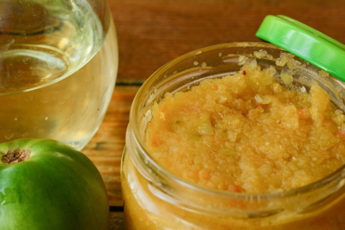 Kaviaar van groene tomaten, eenvoudig recept zonder sterilisatie