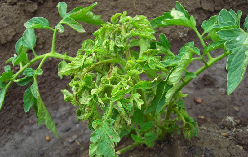 - een verandering in de kleur van de tomatentoppen (de randen van de bladeren worden lichter dan het midden);