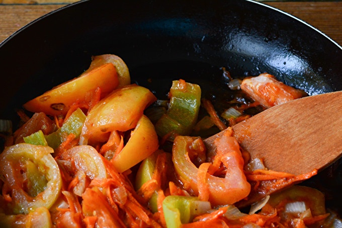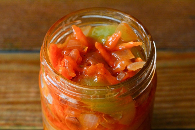Lecho van groene tomaten - lekker, kruidig, smakelijk
